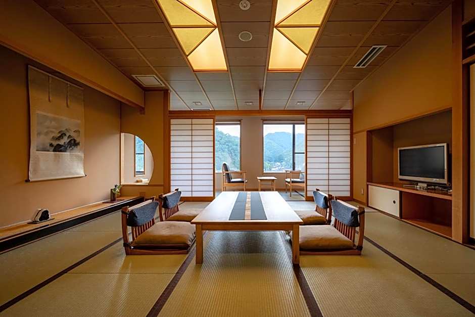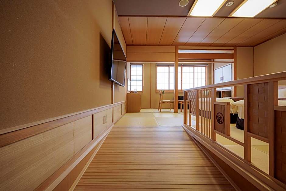 The twin room features a shared bathroom, air conditioning, tatami, as well as a seating area with a flat-screen TV. The twin room offers a wardrobe, a safe deposit box, an electric kettle, yukata and a TV. The unit offers 2 beds.